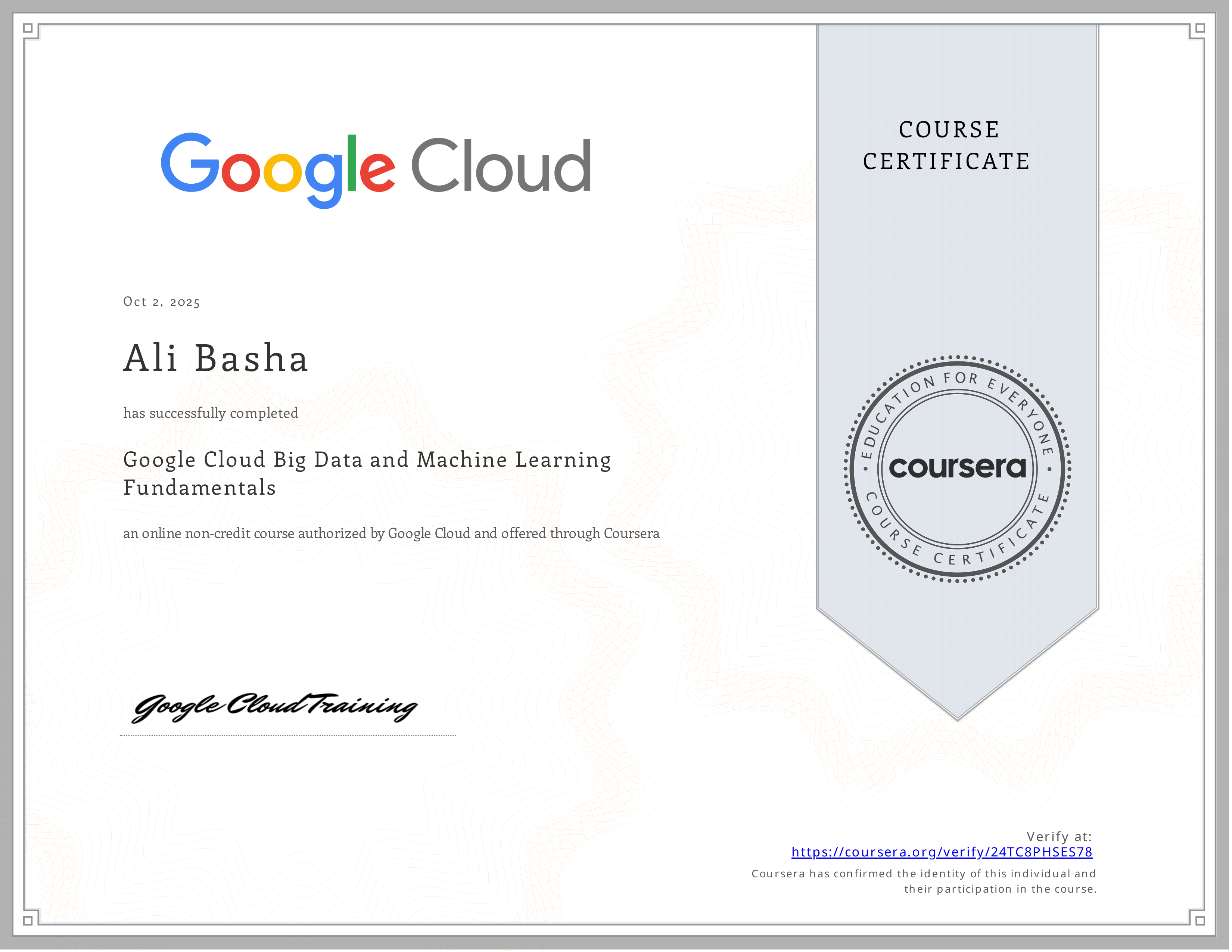 Google Cloud big data and machine learning products and services that support the data-to-AI lifecycle, plus building a big data pipeline and machine learning models with Vertex AI on Google Cloud.